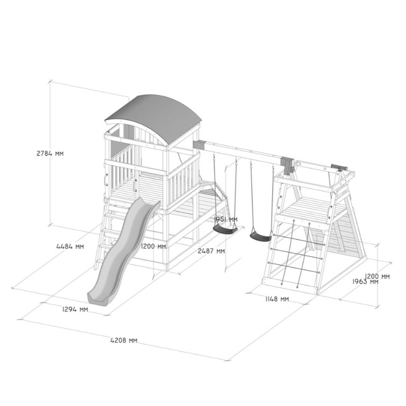Der Spielturm mit Doppelschaukel NIA ist die perfekte Spielstation für Kinder und verwandelt Ihren Garten in ein Abenteuerland! Mit großzügigen Abmessungen von 448,4 x 420 x 278,4 cm bietet dieser Spielturm ausreichend Platz für zahlreiche Aktivitäten. Ob schaukeln, klettern oder rutschen – hier sind der Fantasie keine Grenzen gesetzt!