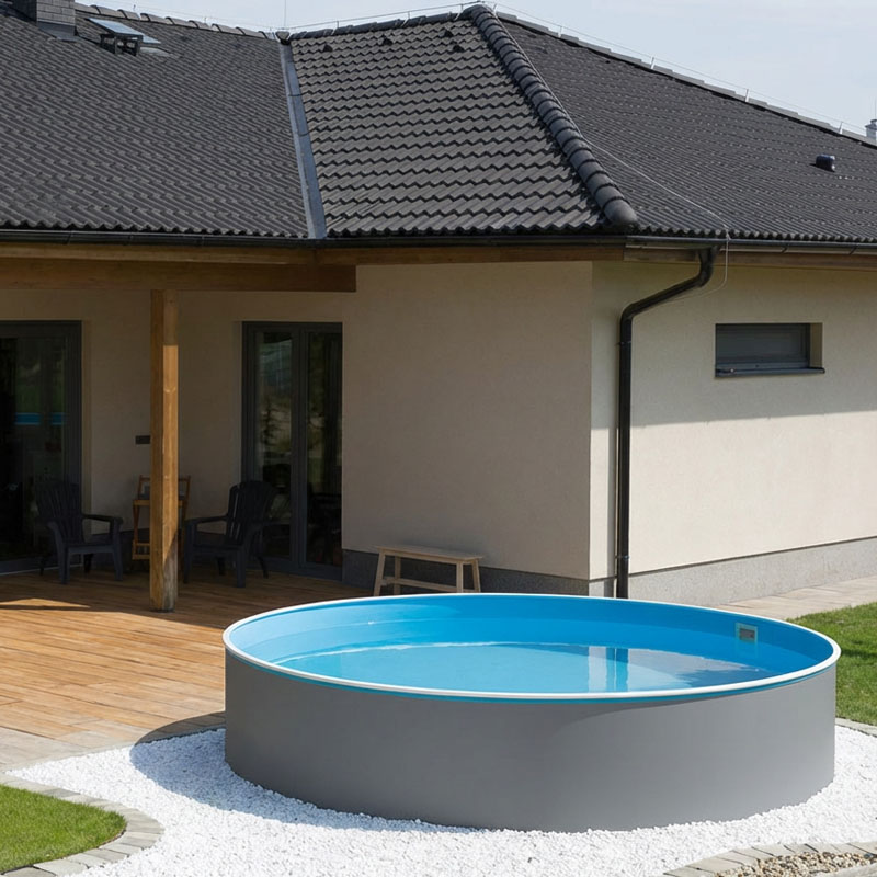 Der Pool ist auf Effizienz getrimmt. Er benötigt in der Regel keine aufwendigen Erdarbeiten oder Betonplatten, was ihn zur kostengünstigsten Lösung für einen echten Stahlwandpool macht.