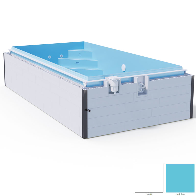 Außerdem erhalten Sie passend zum Pool auch eine innenliegende Ecktreppe in der Farbe des Beckens.