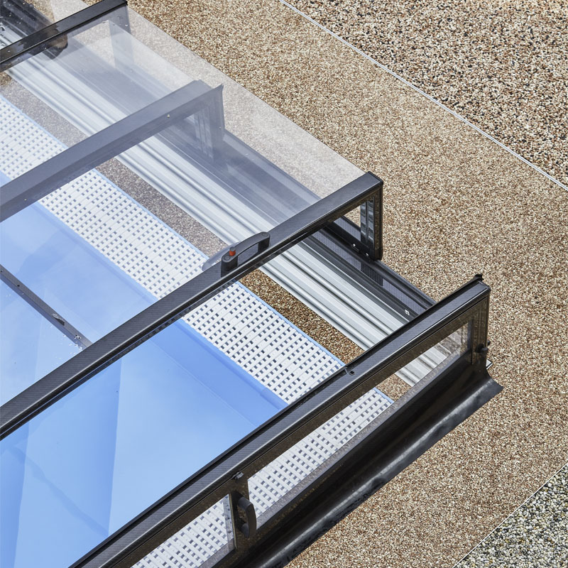 nur auf einer Seite Löcher in den Boden bohren müssen. Obendrein sehen Poolüberdachungen mit einseitigen Laufschienen noch eleganter und hochwertiger aus.