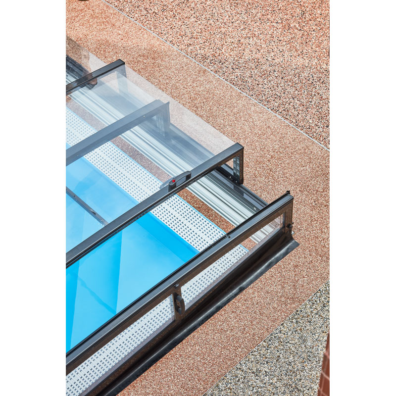 nur auf einer Seite Löcher in den Boden bohren müssen. Obendrein sehen Poolüberdachungen mit einseitigen Laufschienen noch eleganter und hochwertiger aus.