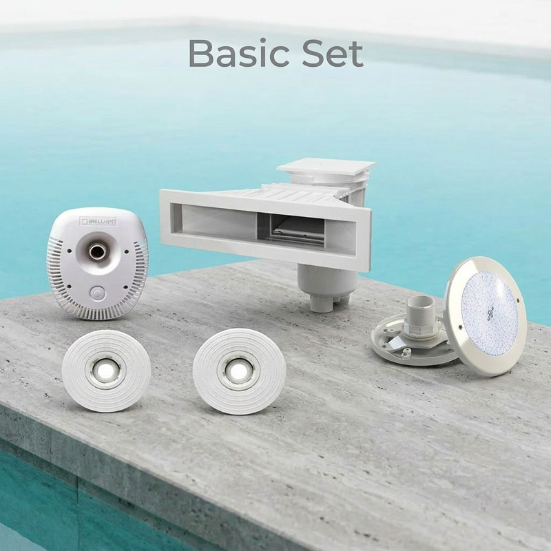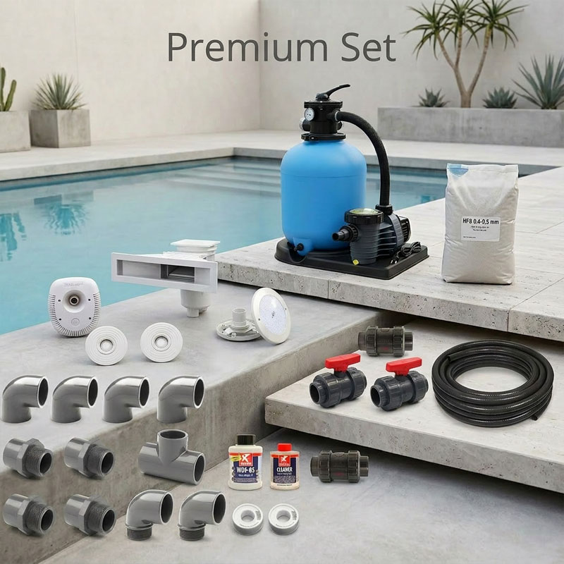 Dieses Set umfasst die essenziellen Komponenten für den Poolaufbau. Es ist ideal für Kunden, die bereits eigene Techniklösungen planen oder eine solide Basis suchen.