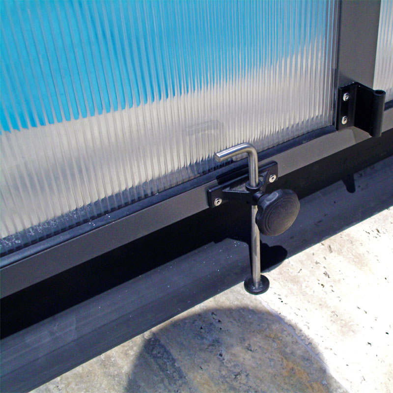 Für den besonders bequemen Einstieg in die flache Poolüberdachung sorgt die seitliche Schiebetür. Sie selber können die Seite der seitlichen Schiebetür wählen.Bitte geben Sie im Bestellvorgang die Seite der Schiebetür an.