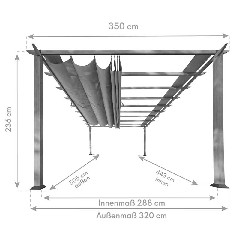 - Außenmaße (LxBxH) 350 x 505 x 236 cm