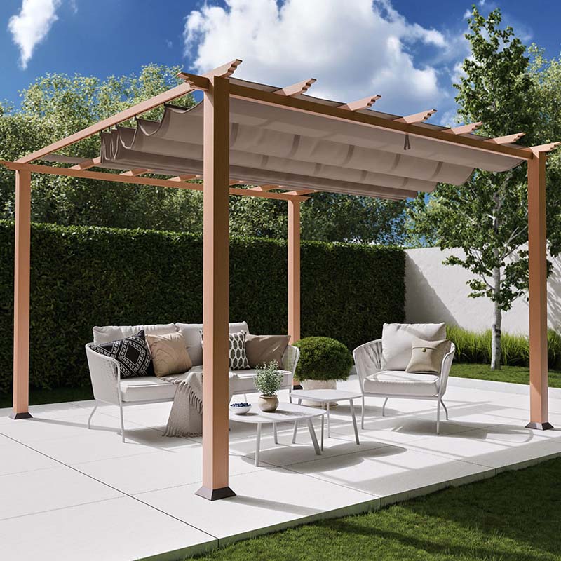 Aluminium Pergola Florida 1111 Holzoptik Hellbraun 350x350x235 cm