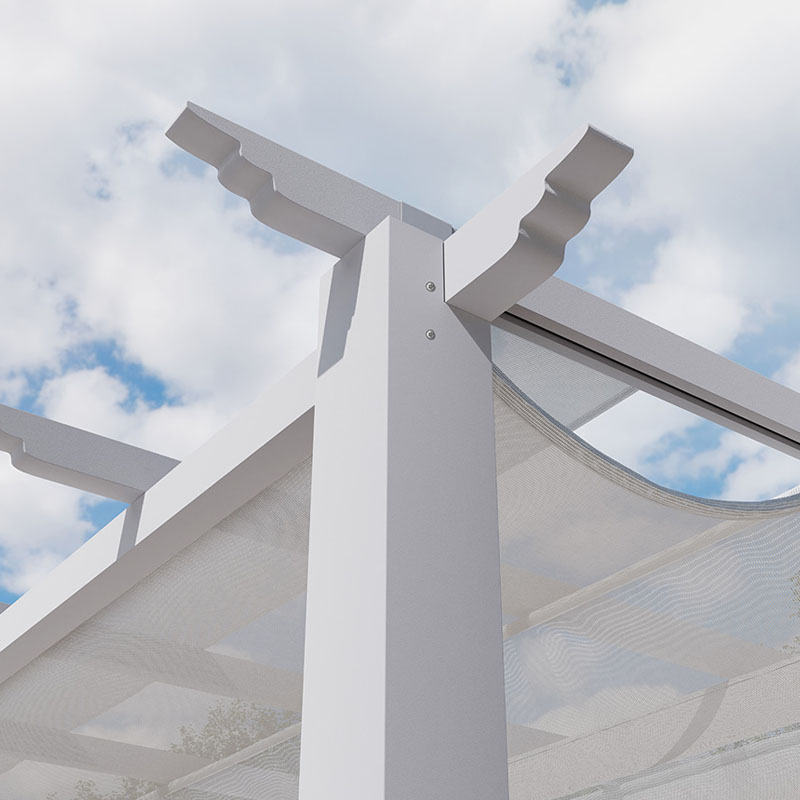 - Verstärktes Aluminium: Das pulverbeschichtete Gestell ist bis zu 20 % dicker als bei herkömmlichen Standard-Pergolen. Das sorgt für eine überragende Verwindungssteifigkeit und Standfestigkeit.