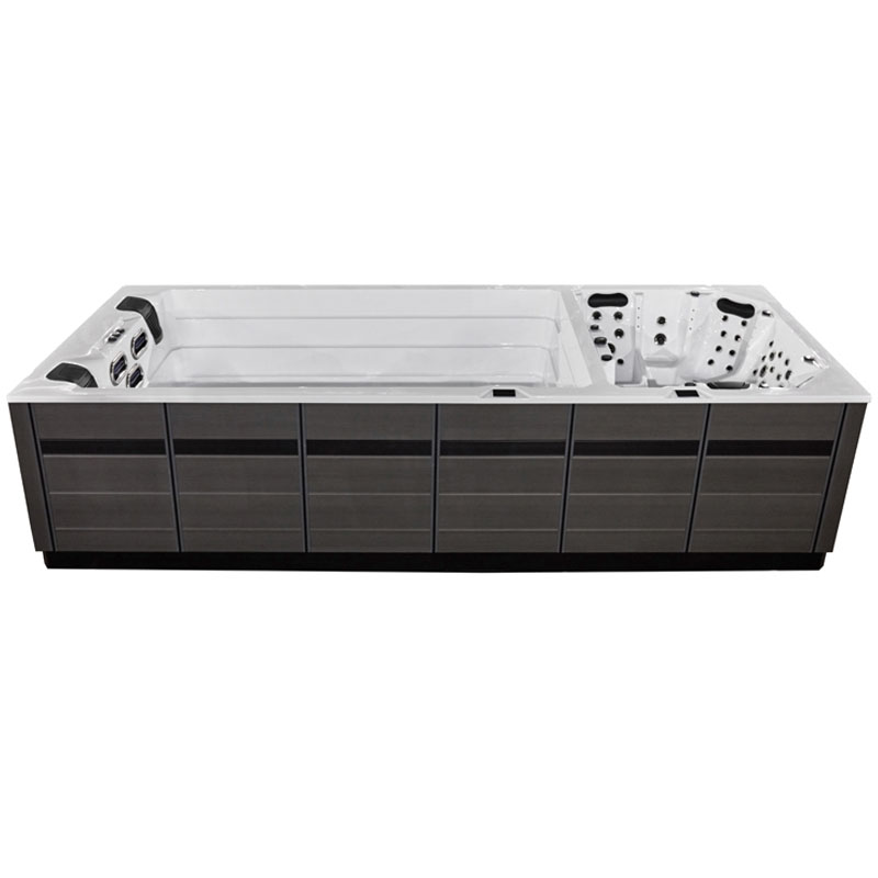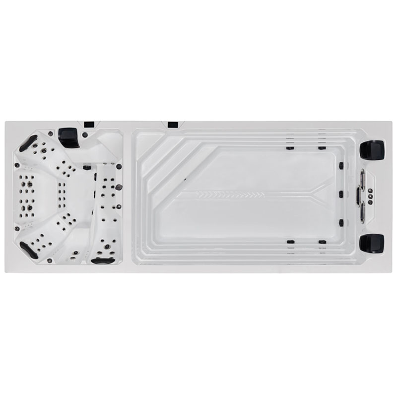 Der AWT Innovation590 Dual Swim Spa verbindet die Vorzüge eines luxuriösen Whirlpools mit den Fitnessmöglichkeiten eines Swim Spas. Mit großzügigen 590 x 235 x 140 cm bietet dieser Dual Zone SPA sowohl Platz für Entspannung als auch für aktives Training.