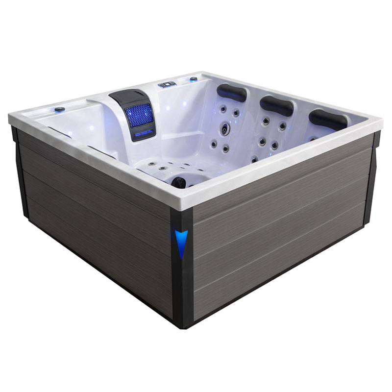 AWT Whirlpool IN-407 ECO Sterling Silver 200 x 200 x 90 cm Farbe grau inkl. Thermoabdeckung, Treppe und mit 38 Hydrojets ausgestattet. Ideal für bis zu 5 Personen geeignet