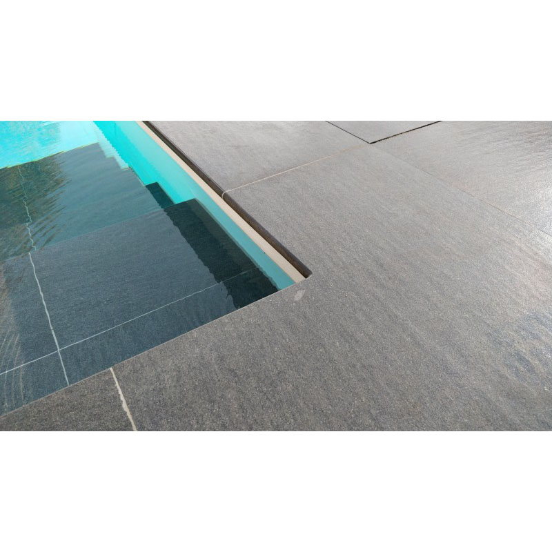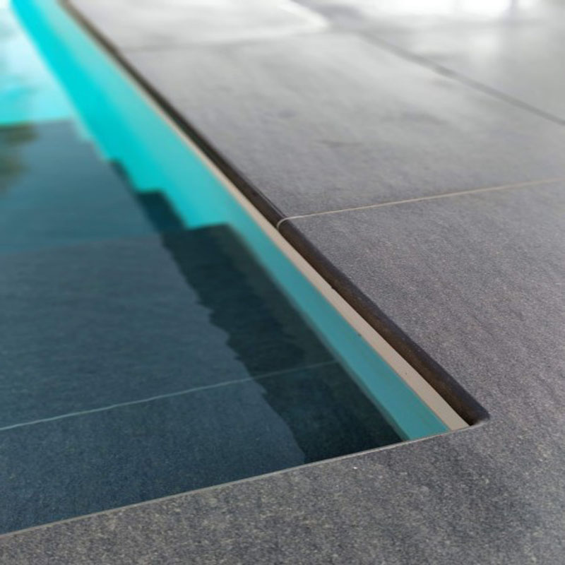 Die Maranello Poolrandsteine aus keramischem Feinsteinzug sind besonders elegant und schön. Erhältlich sind die Steine mit einer polierten und abgerundeten Front und eine gefaste rückwärtige Kante für alle gängigen Poolformen.