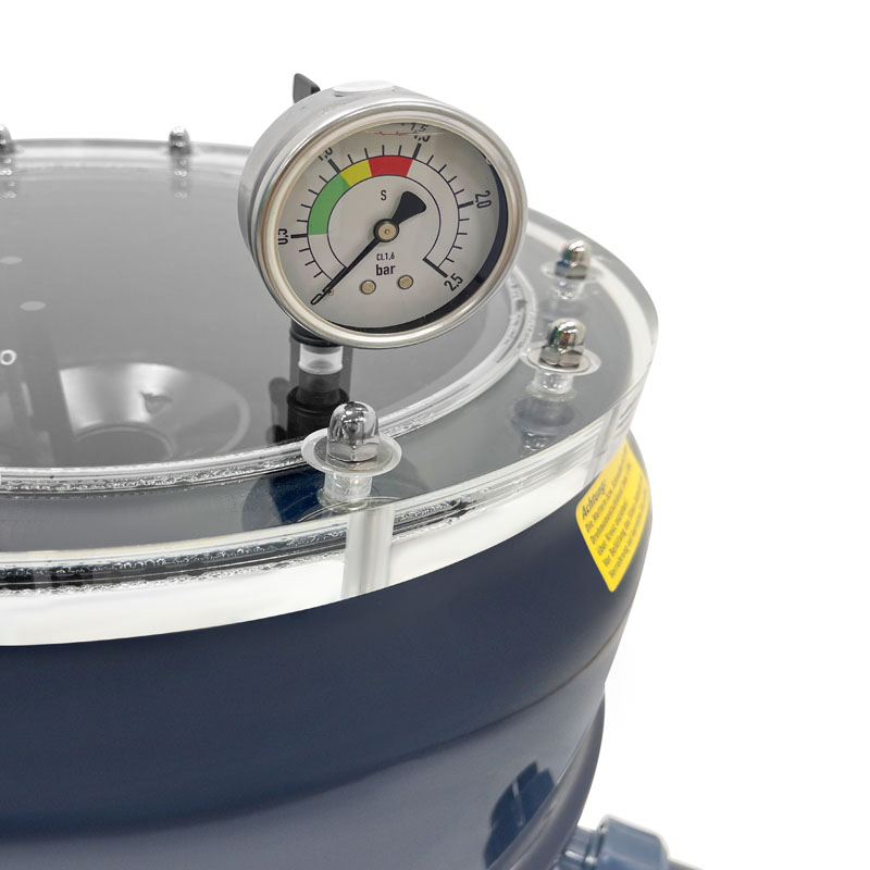 - Effiziente Filtration: Die durchdachte Konstruktion des Filterkessels ermöglicht eine optimale Wasserführung und somit eine hocheffiziente Filtration von Schmutzpartikeln und Verunreinigungen.