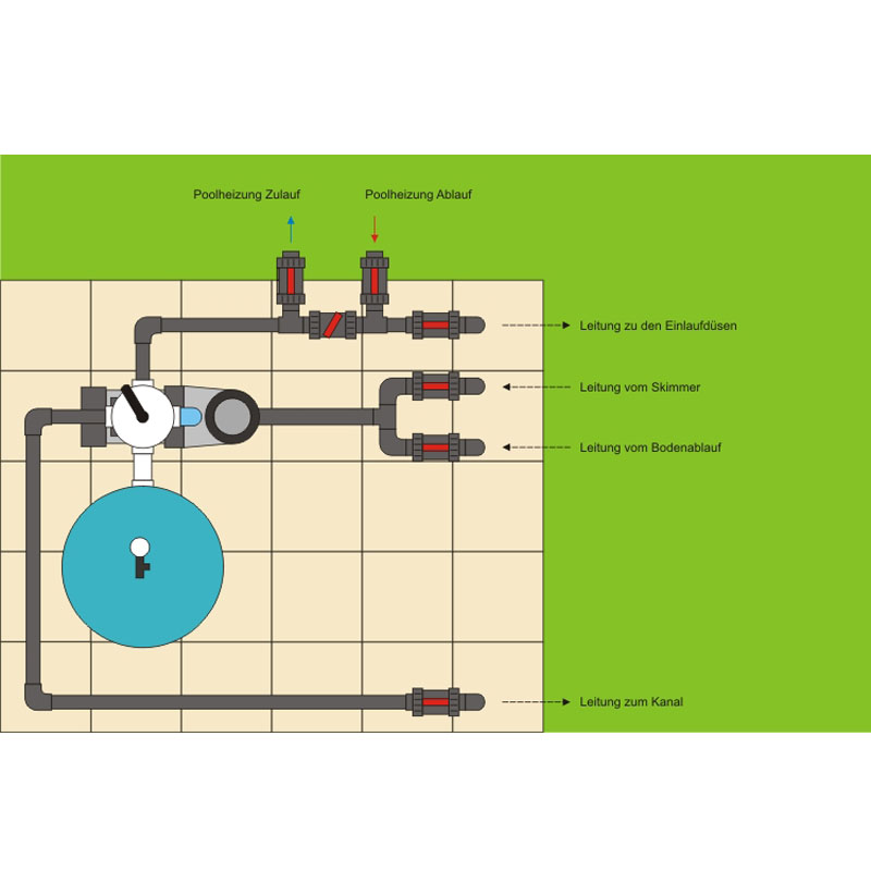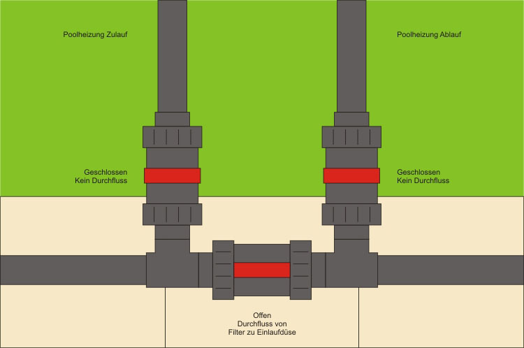 - Wärmepumpe/Solarheizung können bei Bedarf erweitert werden, ohne dass die Filterpumpe ausgeschaltet werden muss