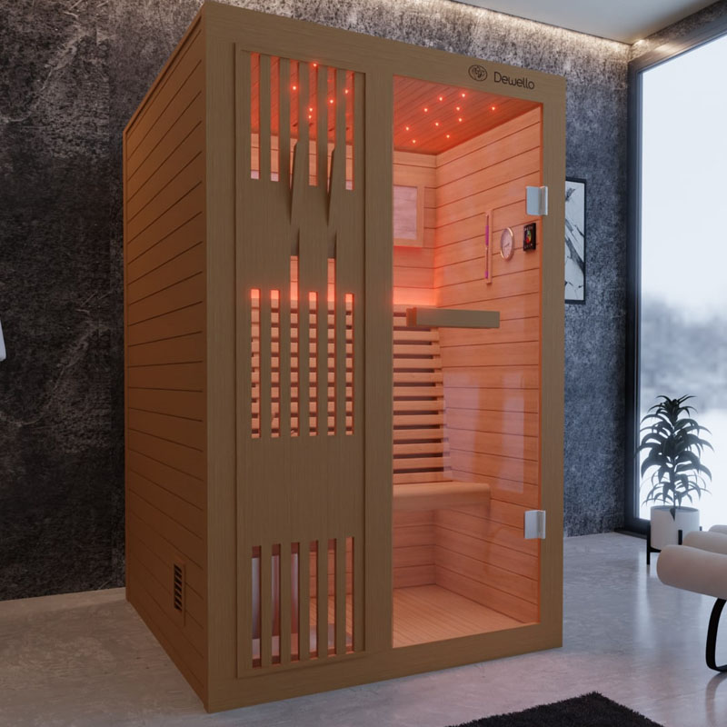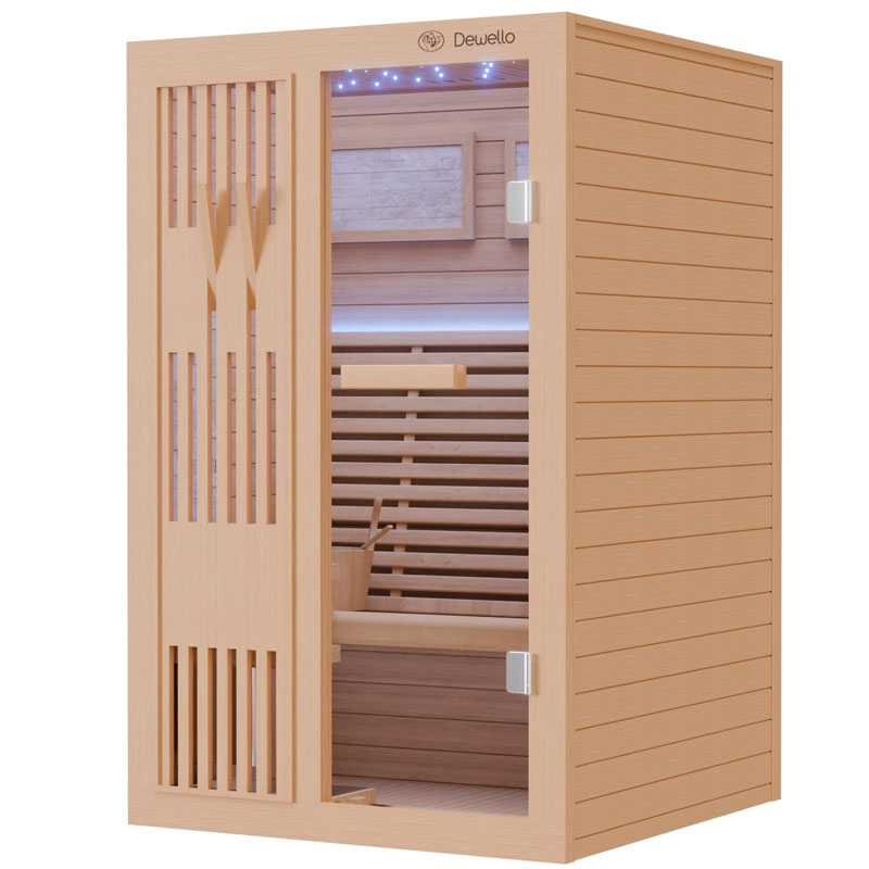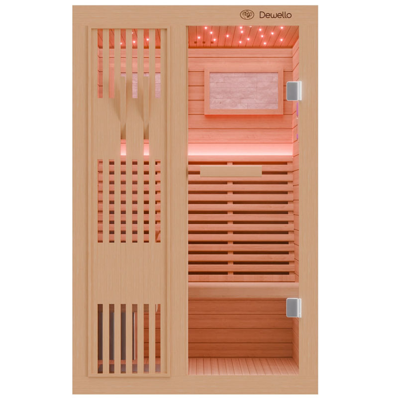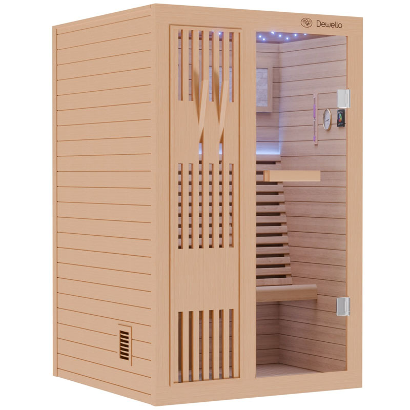 Mit der Dewello® MINTO Finnischen Sauna schaffen Sie sich eine erholsame Oase zu Hause. Hochwertige Materialien und durchdachtes Design machen sie zur idealen Wahl für Ihre Wellness-Routine. Tauchen Sie ein und stärken Sie Ihr Wohlbefinden in Ihrem eigenen privaten Wellnessbereich.