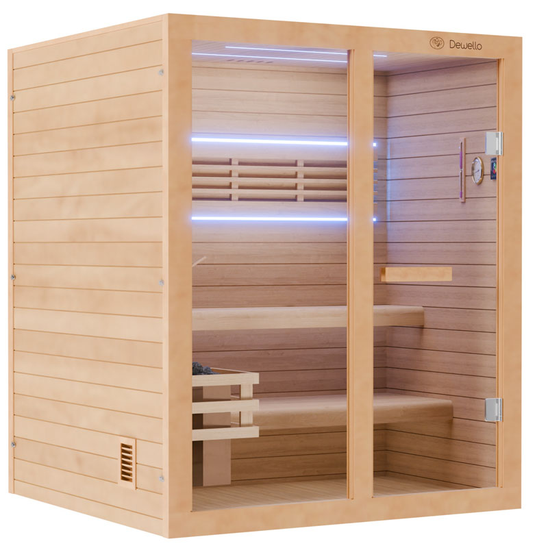 Entdecken Sie mit der Dewello® Finnischen Sauna TOFINO die perfekte Kombination aus finnischer Tradition, hochwertigen Materialien und erstklassiger Handwerkskunst. Genießen Sie entspannte Saunagänge in Ihrer persönlichen Wellness-Oase, die durch ihre robuste Konstruktion und einfache Pflege zu einer langlebigen und wertvollen Ergänzung für Ihren Wellness-Bereich wird.