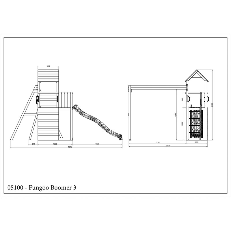 Produktinformationen "Fungoo Spielturm Boomer3 | Doppelschaukel | Sandkasten | Rutsche"