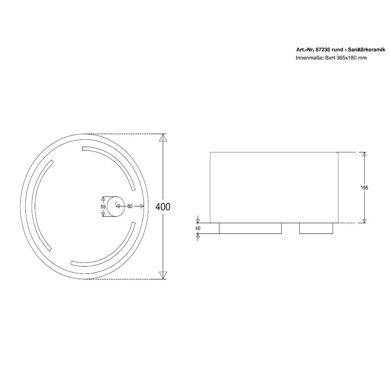 Fußbecken Fußbadekügel Keramik rund d 365 mm