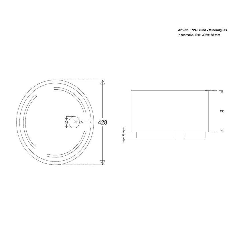 - Außenmaße ca. 428 x 230 mm (DxH)