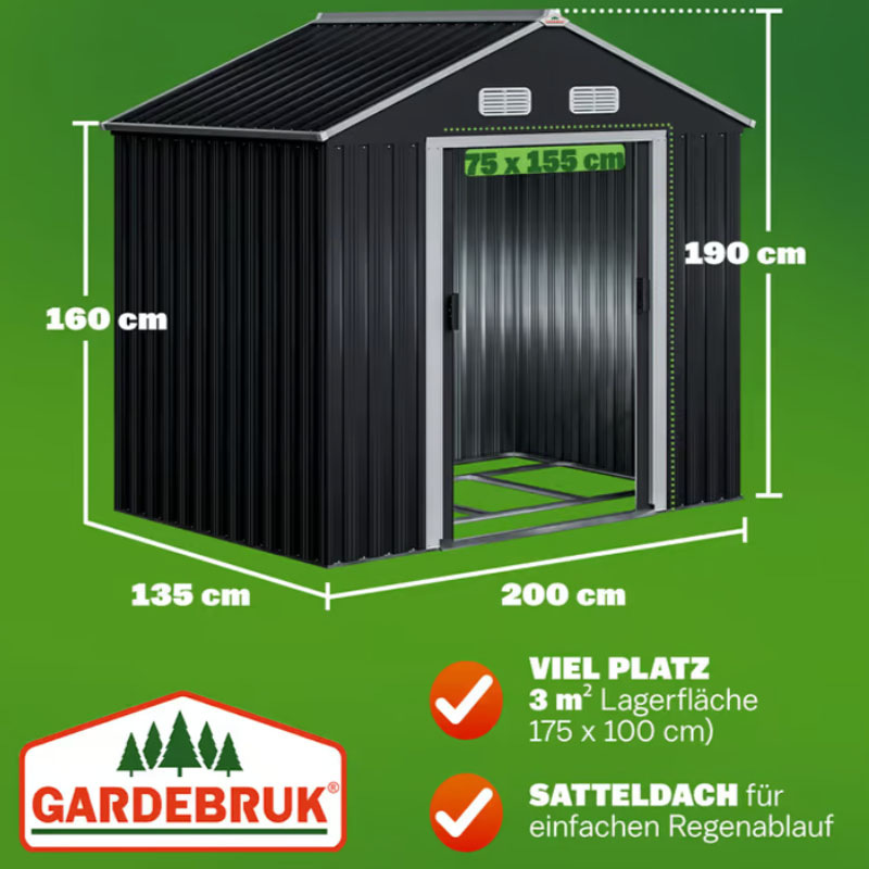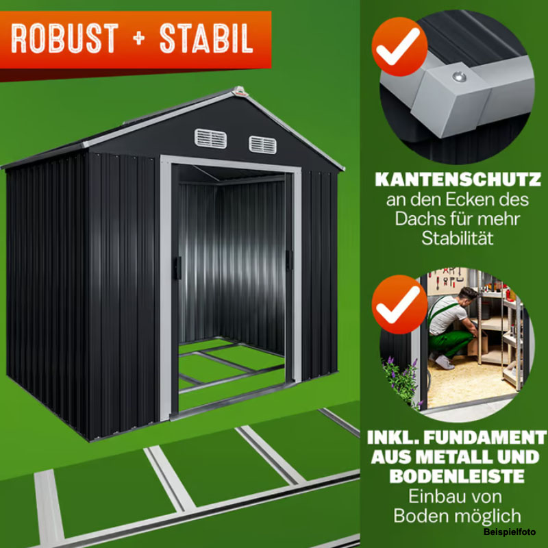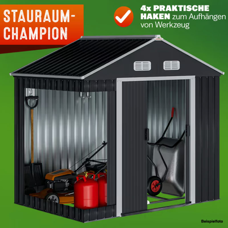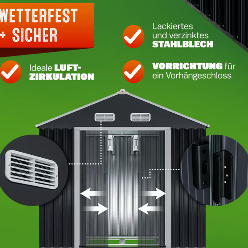 - 1,8 m² Raumfläche: Bietet ausreichend Platz für Gartengeräte und Fahrräder.