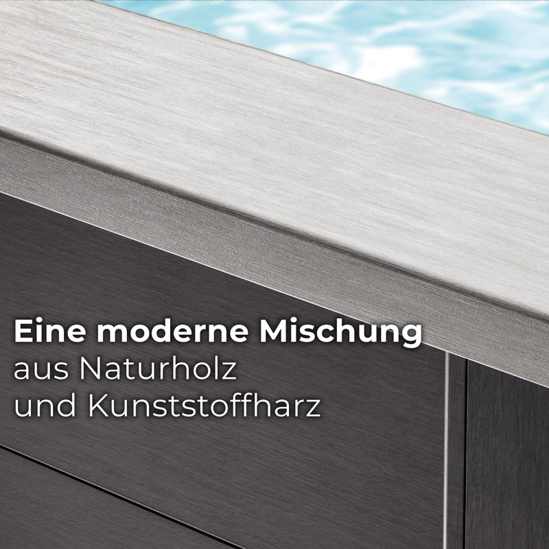 Die GRE Compositepool-Serie ist die perfekte Wahl für alle, die einen langlebigen, stilvollen und einfach zu montierenden Pool suchen. Mit ihrem avantgardistischen Design und der innovativen Materialzusammensetzung aus Holz und PVC vereint diese Pool-Serie die besten Eigenschaften beider Materialien. Compositepools bieten eine exzellente Alternative zu klassischen Holzbecken und überzeugen durch hohe Funktionalität, moderne Optik und eine lange Lebensdauer.