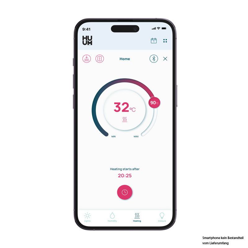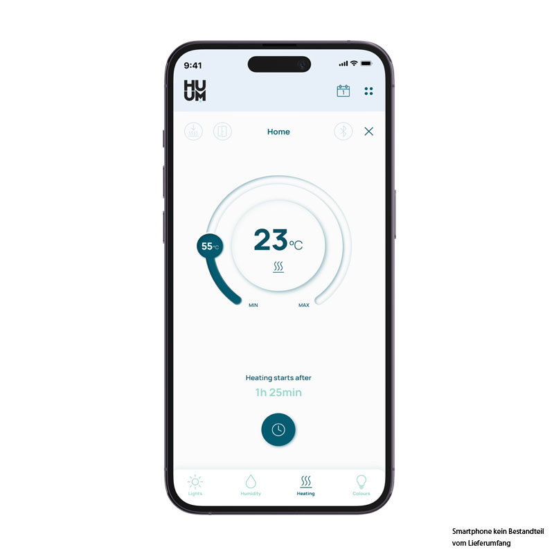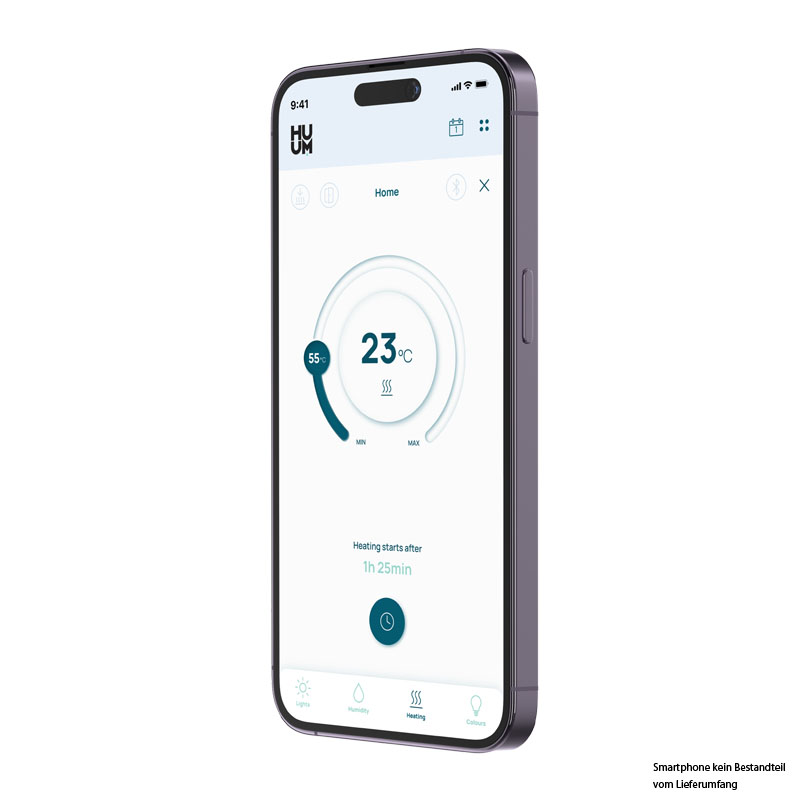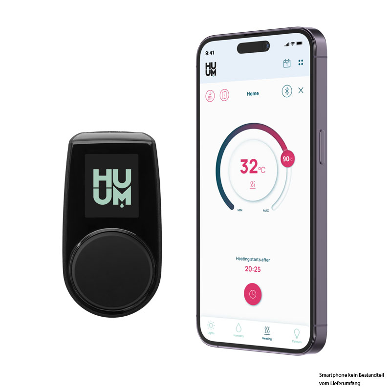 Die Huum-Steuerung fällt optisch kaum auf und zeichnet sich durch eine sehr gute und einfache Bedienung aus. Die App ist zudem selbsterklärend.