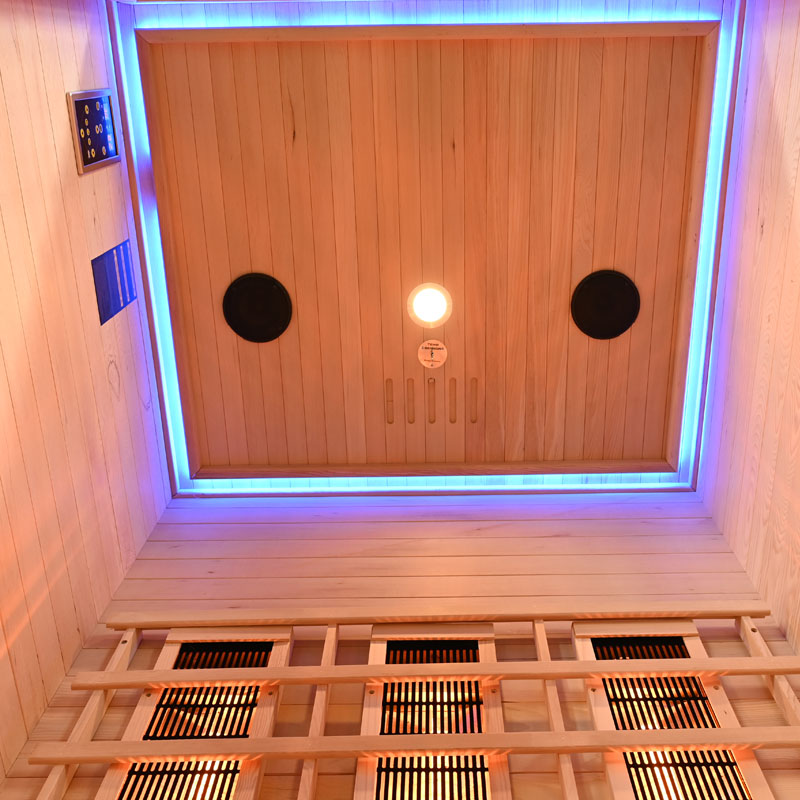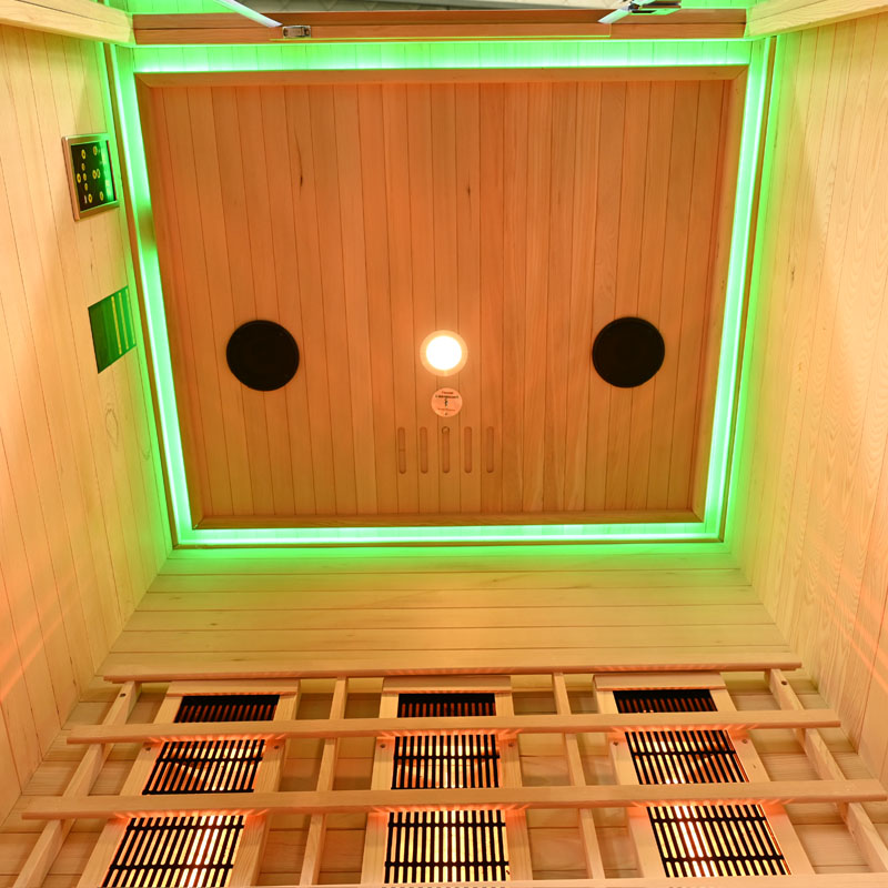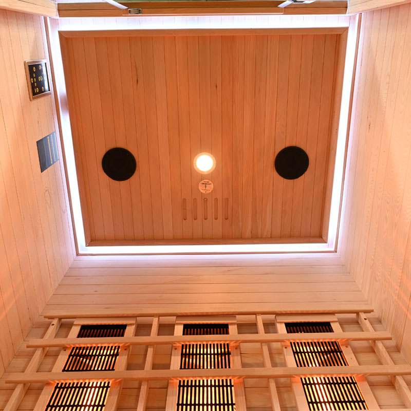 Damit Sie Ihre Zeit in der Infrarotsaunakabine noch mehr genießen können, ist ein MP3 Player mit Radiofunktion, USB, AUX und SD Anschlüssen integriert. Zwei Lautsprecher sorgen für den optimalen Klang. Eine Lüftung sorgt für frische Luft und ein angenehmes Klima während Ihres Saunaaufenthalts.