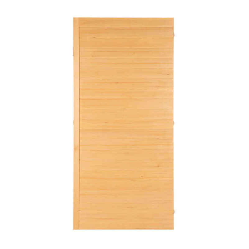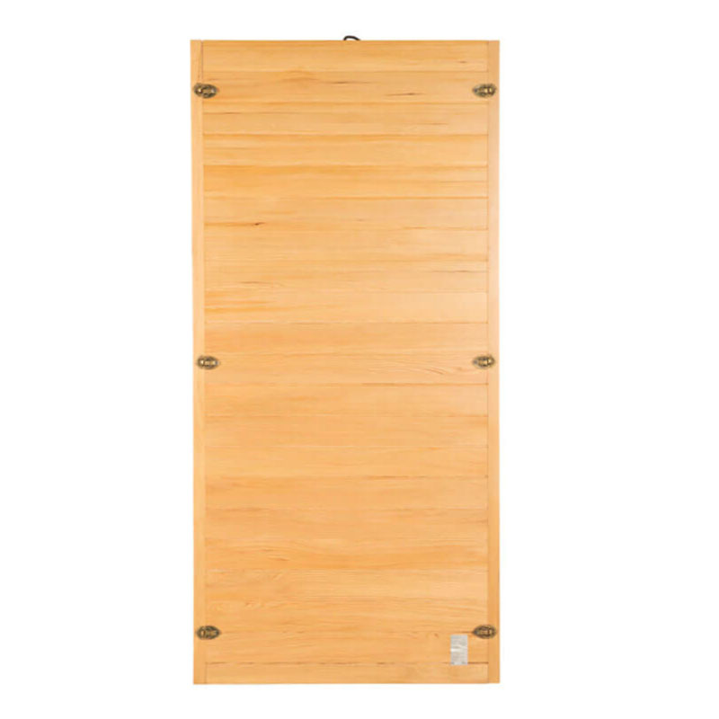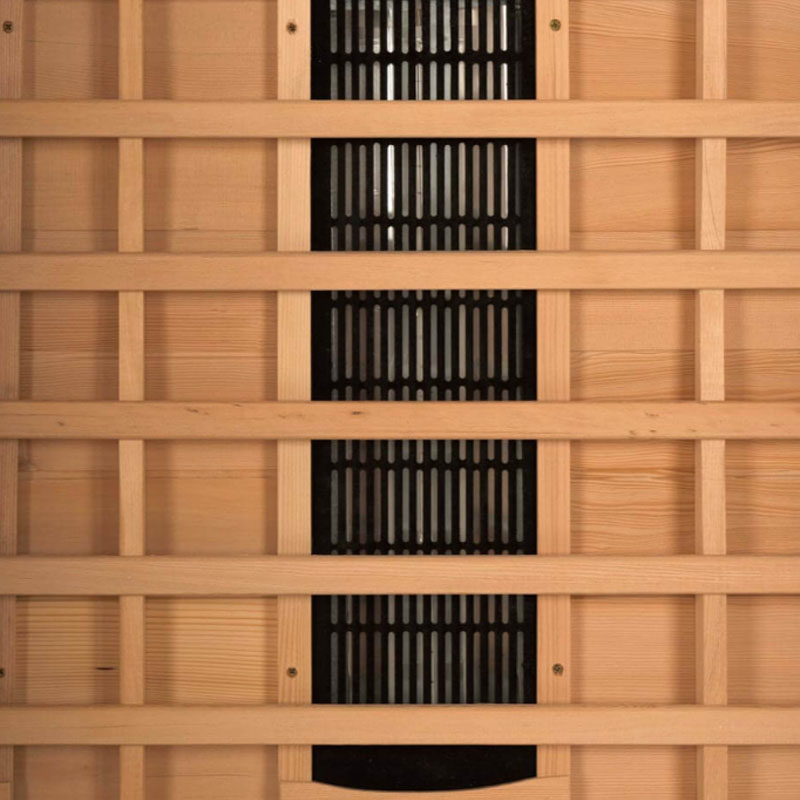 Die Redsun Deluxe S Infrarotkabine ist aus edlem Hemlock-Tannenholz gefertigt, das für seine hervorragenden Wärmedämmeigenschaften bekannt ist. Die große Glasfront sorgt für ein offenes und einladendes Ambiente.