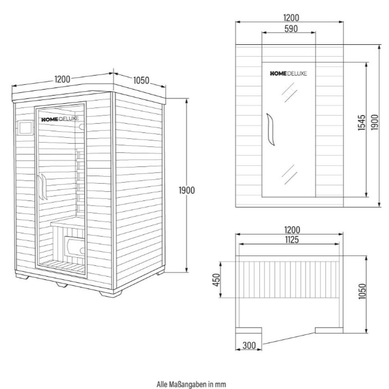 - Maße (B x T x H): 120 x 105 x 190 cm (+ 15 cm für Lichtkranz)