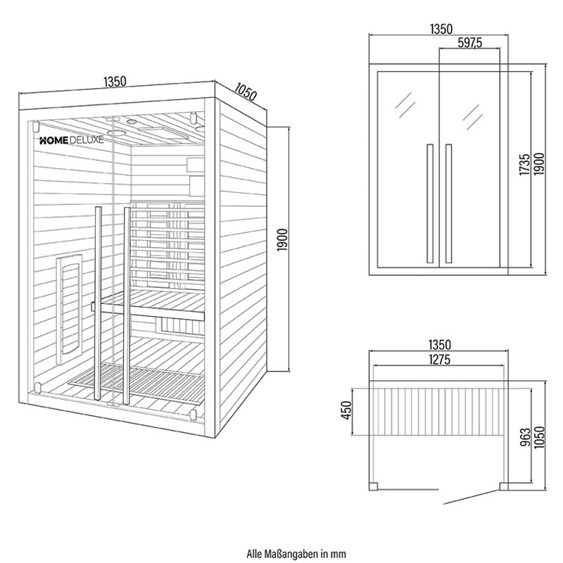 Infrarotkabine Sonora M 135 x 105 x 190 cm ideal für bis zu 2 Personen geeignet