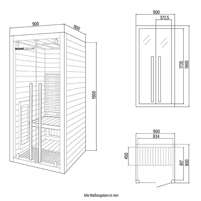 Infrarotkabine Infrarotkabine Sonora S 90 x 90 x 190 cm ideal für 1 Person als Selbstbausatz