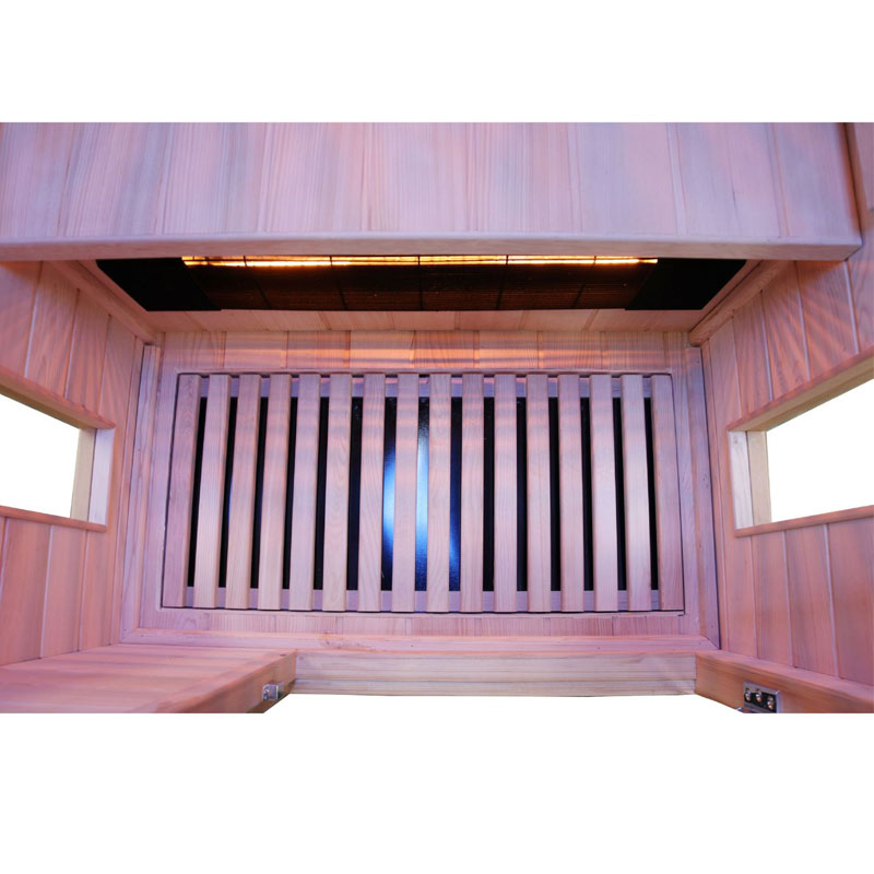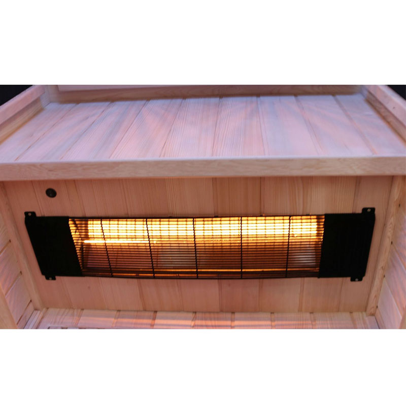 Infrarotsauna Pierson in der Größe 90x90 und 160x105 cm erhältlich aus kanadischem Hemlock Tannenholz mit Vollspektrum- und Karbonstrahler ausgestattet
