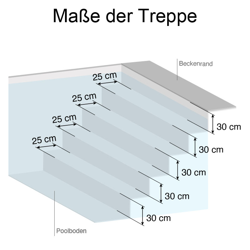 Beginnend vom Beckenboden hat somit die erste Stufe 30 cm Höhe, die 2. Stufe 60 cm,