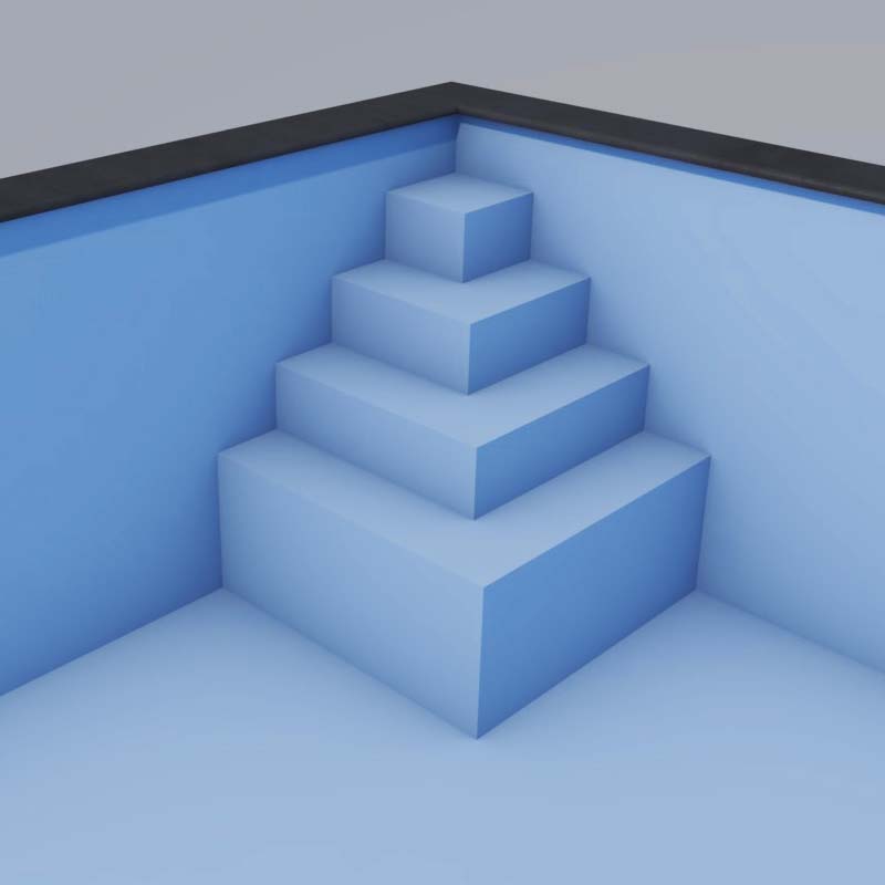 Fertigungsbedingt kann die Poolfolie im Bereich der Treppe nicht mit 90° Ecken produziert