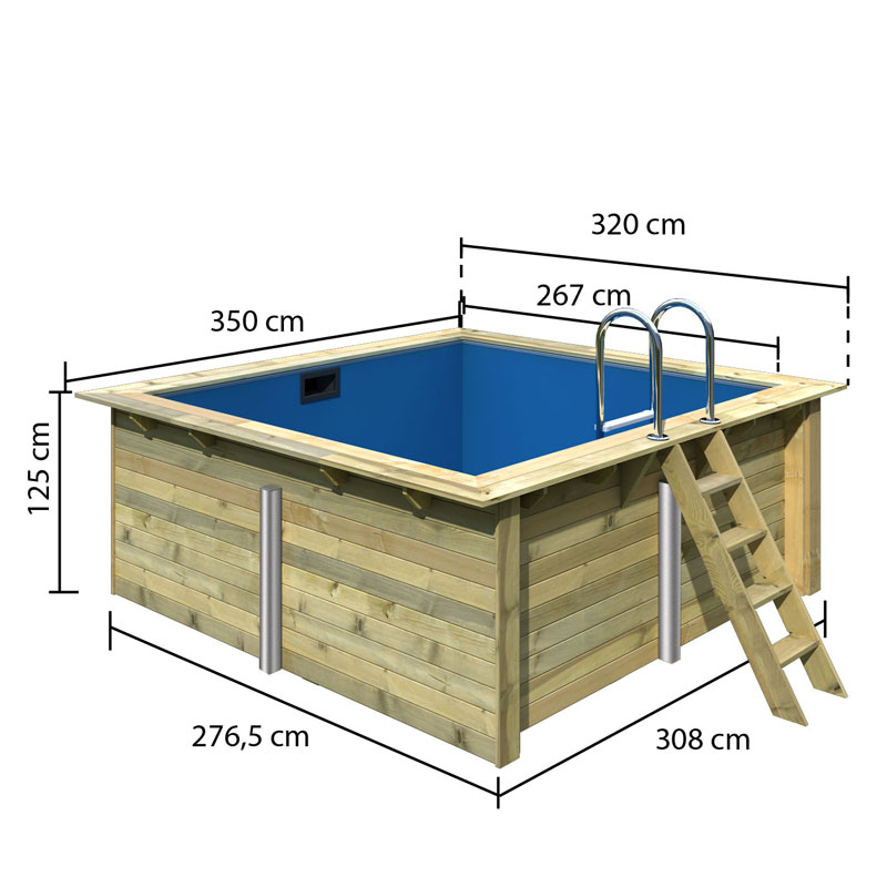 Produktinformationen "Karibu Holzpool Set Rechteck Lezzeno 1 | ca. 3,10 x 2,80 x 1,24 m | mit Blockbohle | Massivholz & Winterfest"