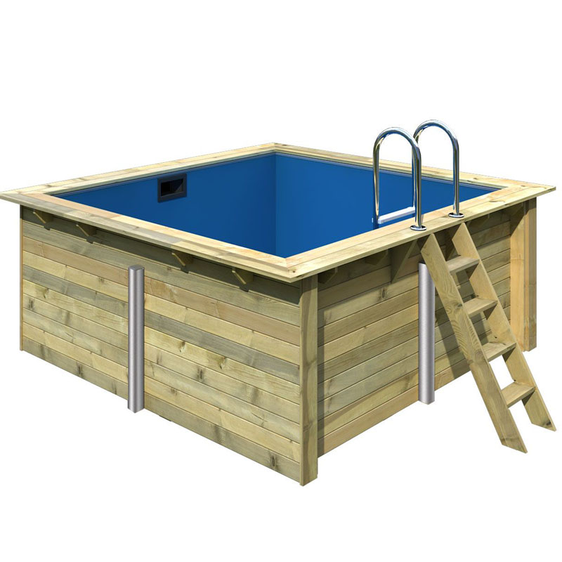 gepflasterten Boden, damit der Pool auch einen sicheren Stand hat. Auf die Holzkonstruktion erhalten Sie vom Hersteller 5 Jahre Garantie.