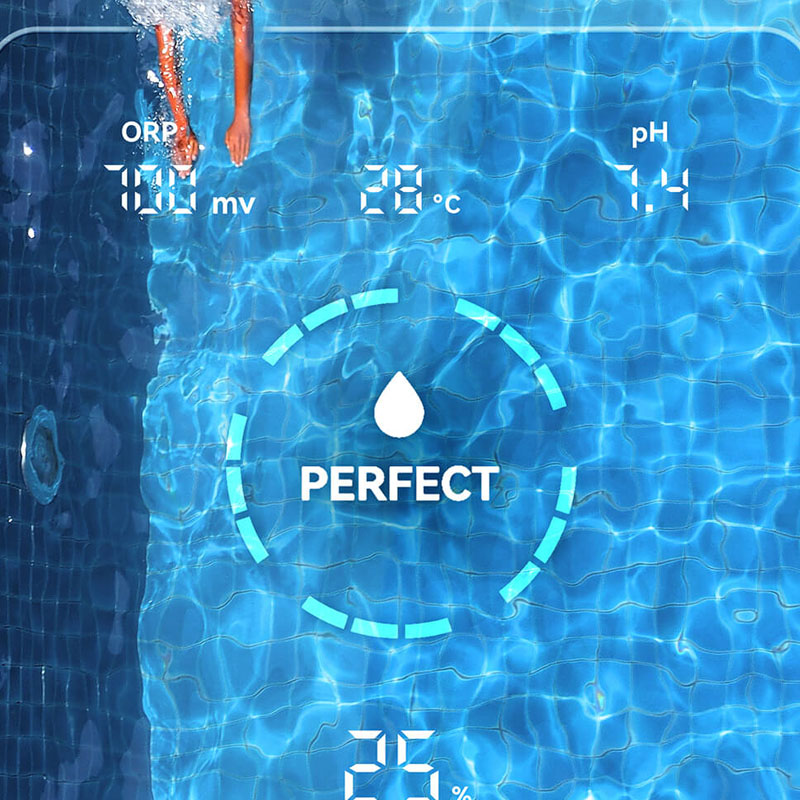 • Salzgehalt-Messung: Die integrierte Salzgehalt-Messung überwacht den Salzgehalt im Poolwasser und warnt Sie, wenn Salz nachgefüllt werden muss.
