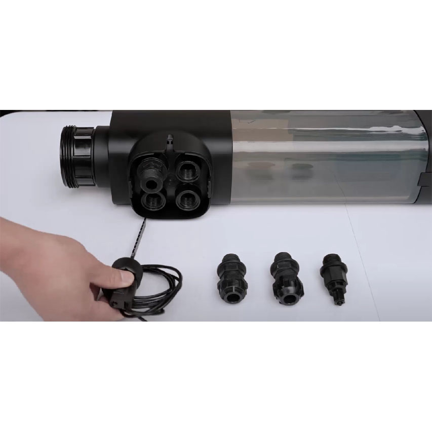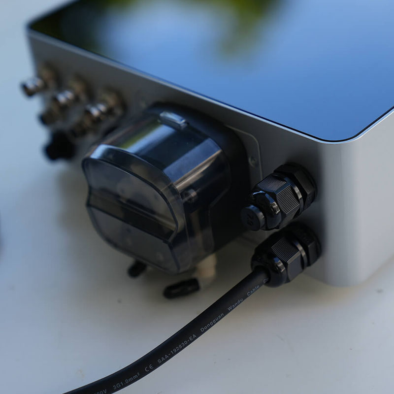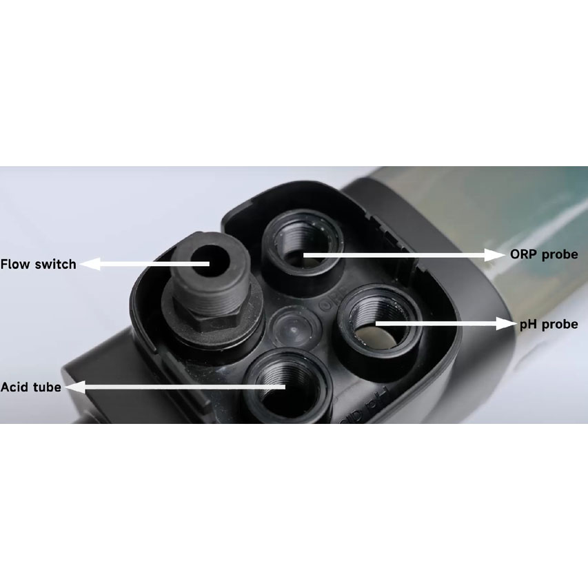 • Eingebaute pH-Pumpe: Die integrierte pH-Pumpe dosiert automatisch pH-Senker, um den pH-Wert im optimalen Bereich zu halten.