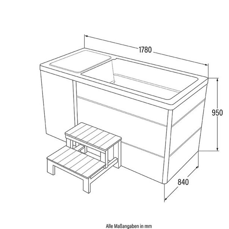 Outdoor Badewanne 178 x 84 x 95 cm mit Treppe inkl. Abdeckung und Kühlgerät