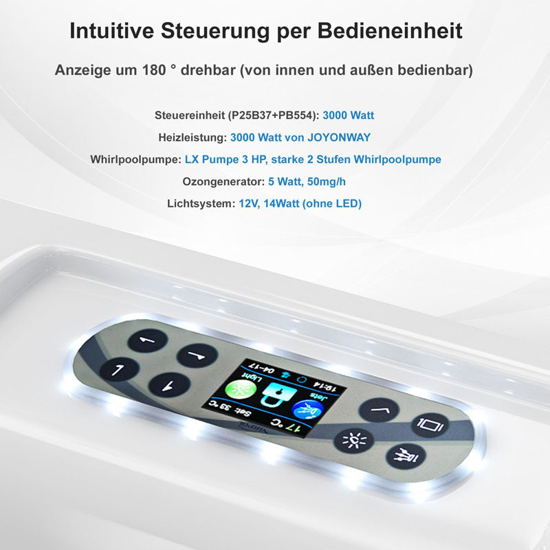 - ✔ Edelstahl-Heizung mit 3000 Watt – Effizient und zuverlässig, auch an kalten Tagen