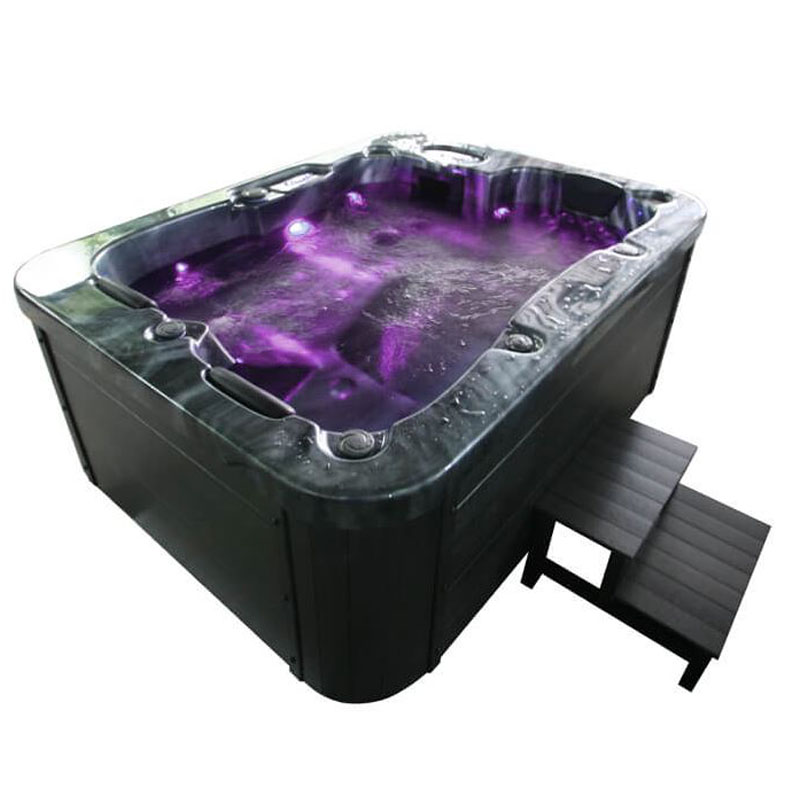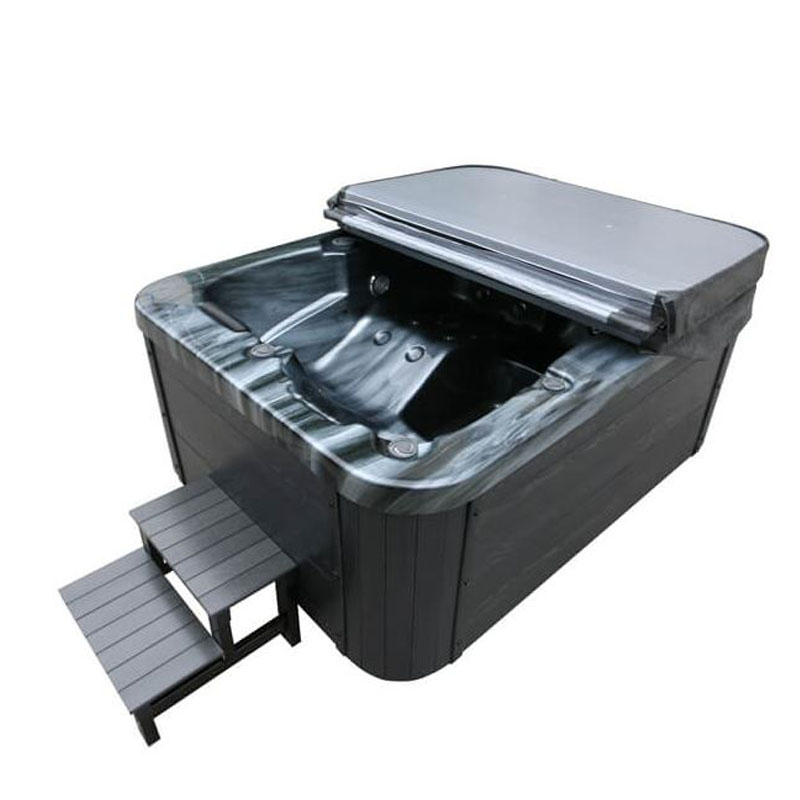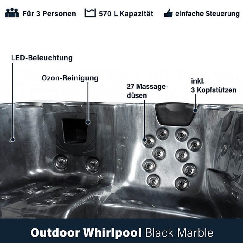 Outdoor Whirlpool Black Marble 210 x 160 x 80 cm für bis zu 3 Personen inkl. Einstiegstreppe und Thermoabdeckung