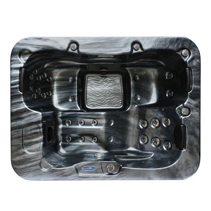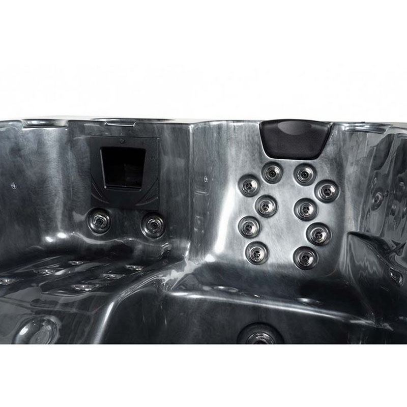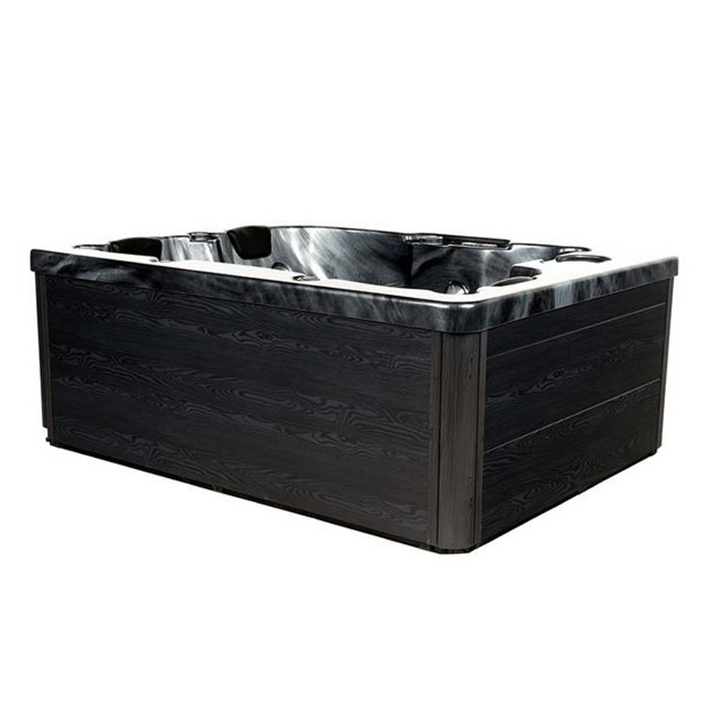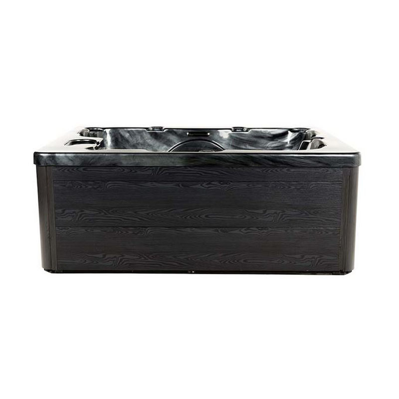- Stilvolles Design: Die marmorierte Wannenoberfläche und die dunkelgraue Außenverkleidung aus robustem WPC (naturfaserverstärkter Kunststoff) machen diesen Whirlpool zu einem echten Blickfang in Ihrem Outdoor-Bereich.
