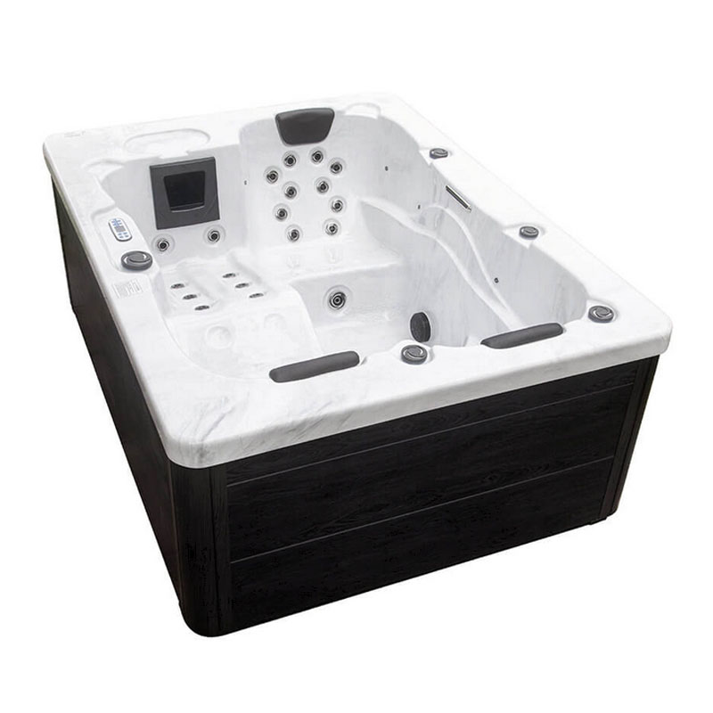Der Outdoor Whirlpool Marble Pure verwandelt Ihren Garten oder Ihre Sonnenterrasse in einen stilvollen Wellnessbereich mit Urlaubsflair. Mit den kompakten Abmessungen von 210 x 160 x 80 cm und einem Fassungsvermögen von 815 Litern bietet er Platz für bis zu 3 Personen.