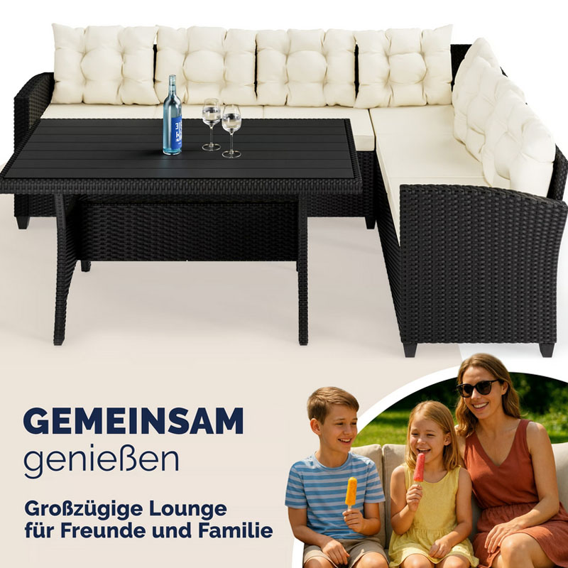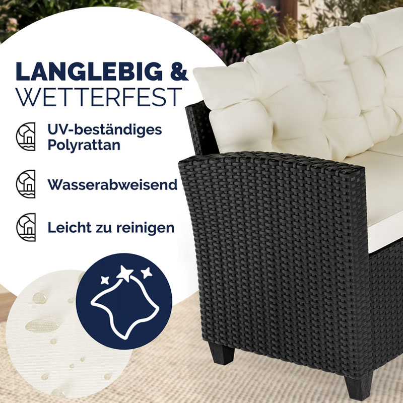 Polyrattan Ecklounge Schwarz/Creme | inkl. Kissen