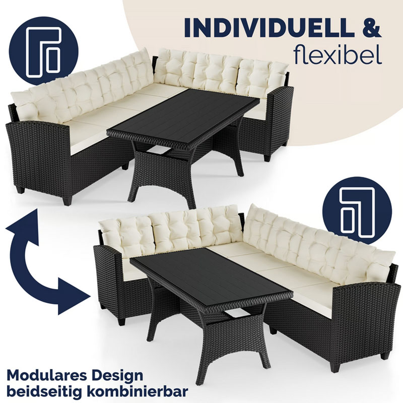 Produktinformationen "Polyrattan Ecklounge Schwarz/Creme | inkl. Kissen"