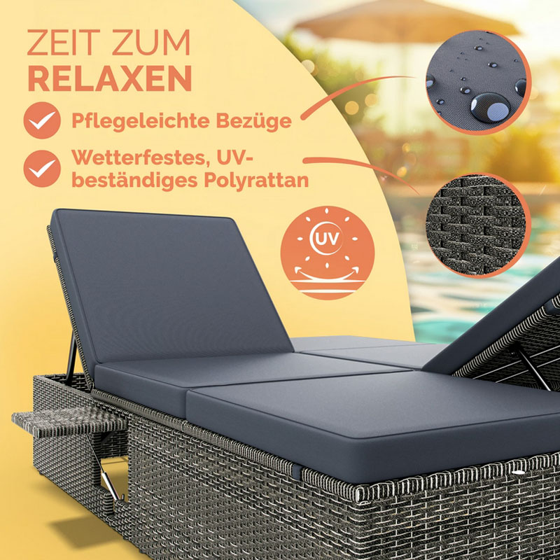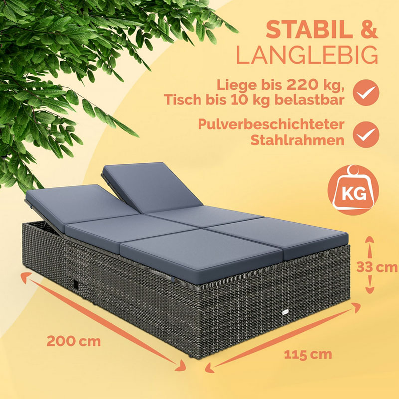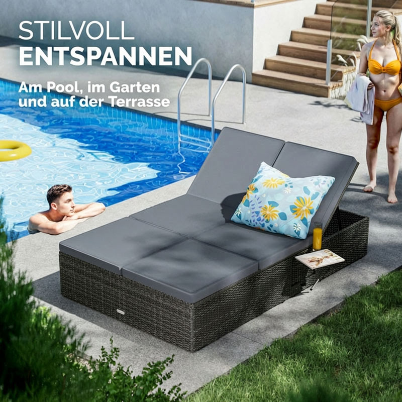 Polyrattan Poolliege 200 x 115 x 33 cm – Doppelliege für ultimativen Komfort