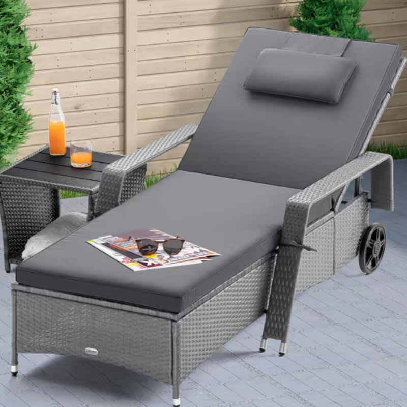 Polyrattan Poolliege fahrbar Grau/Anthrazit 193 x 90 x 43 cm - Gestalten Sie Ihren Garten zur Wohlfühloase mit der fahrbaren Sonnenliege