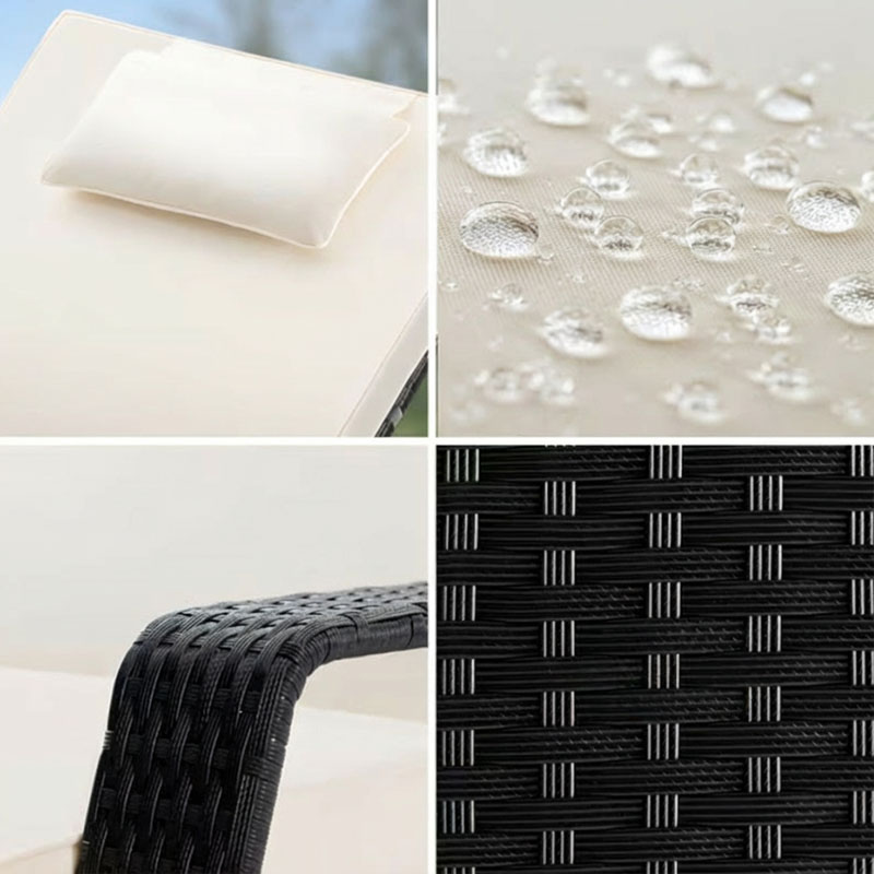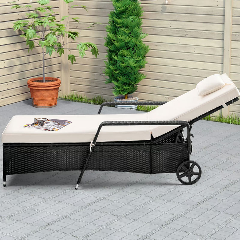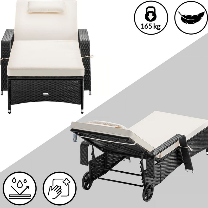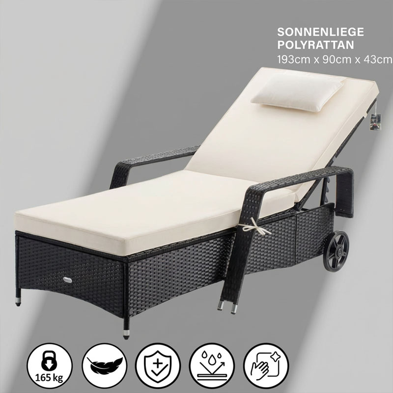 Polyrattan Poolliege fahrbar schwarz creme 193 x 90 x 43 cm - Gestalten Sie Ihren Garten zur Wohlfühloase mit der fahrbaren Sonnenliege