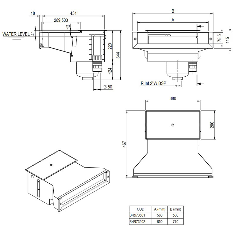 - Vorrichtung für Niveauregler: Der Skimmer verfügt über eine Vorrichtung für den Einbau eines optional erhältlichen mechanischen Niveaureglers.