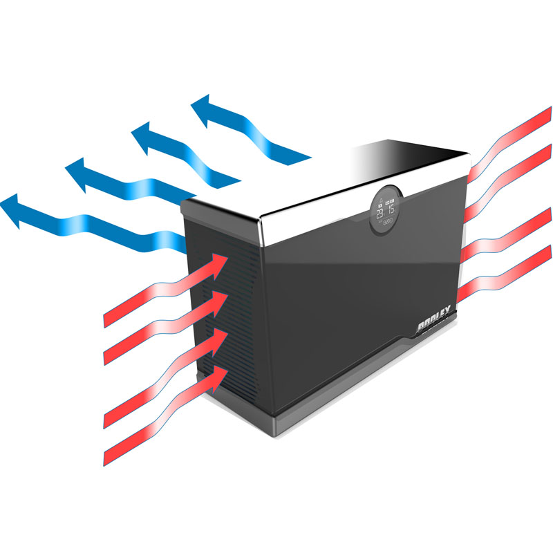 Die Silent Max Wärmepumpe ist die erste Wärmepumpe, die eine Hinterlüftung integriert hat. Durch die Ableitung verbrauchter Luft aus dem Beckenbereich wird die Pumpe im Gegegnsatz zu herkömmlichen Wärmepumpen erheblich leiser.