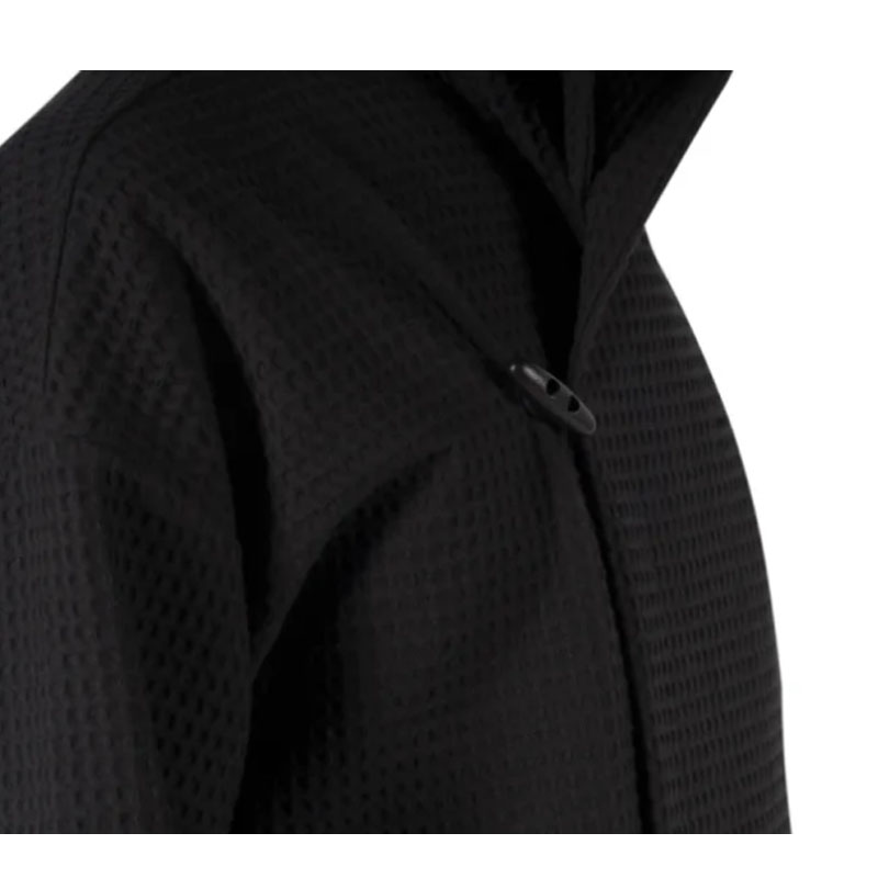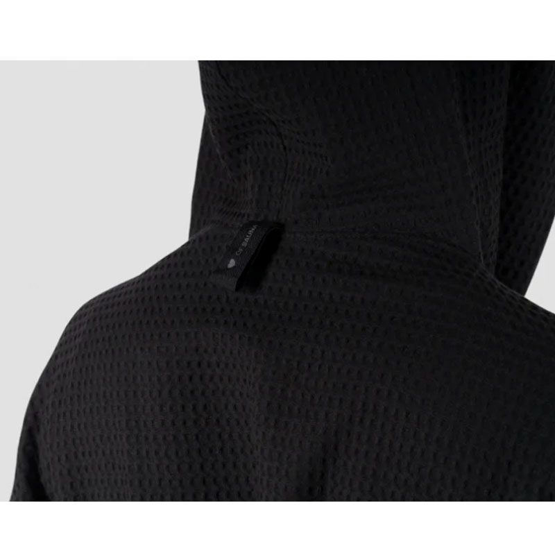 Der körperumschmeichelnde Schnitt des OVO Saunakimonos sorgt für ein angenehmes Tragegefühl. Die Kapuze, die bequem mit einem Knopf befestigt wird, schützt Sie vor kühlem Wind. In den geräumigen Taschen finden eine Flasche Wasser und andere wichtige Dinge Platz.