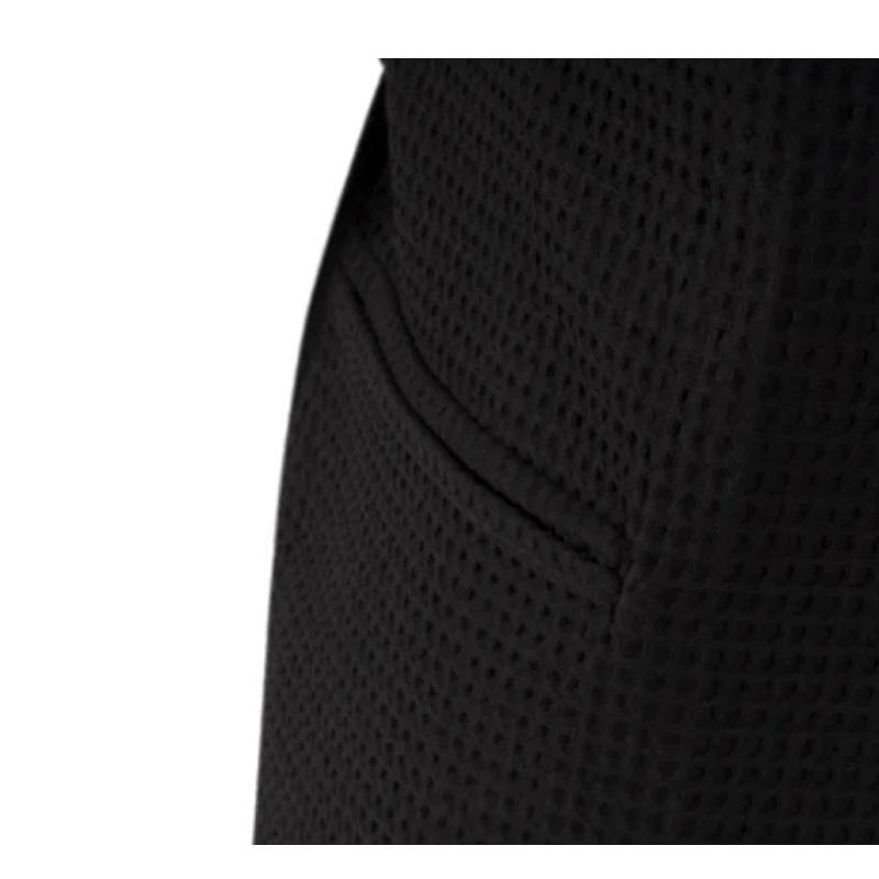 Jeder OVO Saunakimono wird von Hand aus 100 % OEKO-TEX Baumwoll-Waffelstoff gefertigt. Dieser Stoff ist besonders saugfähig, schnelltrocknend und lässt die Haut atmen. Der elegante schwarze Farbton ist inspiriert von den langen nordischen Sommerabenden.