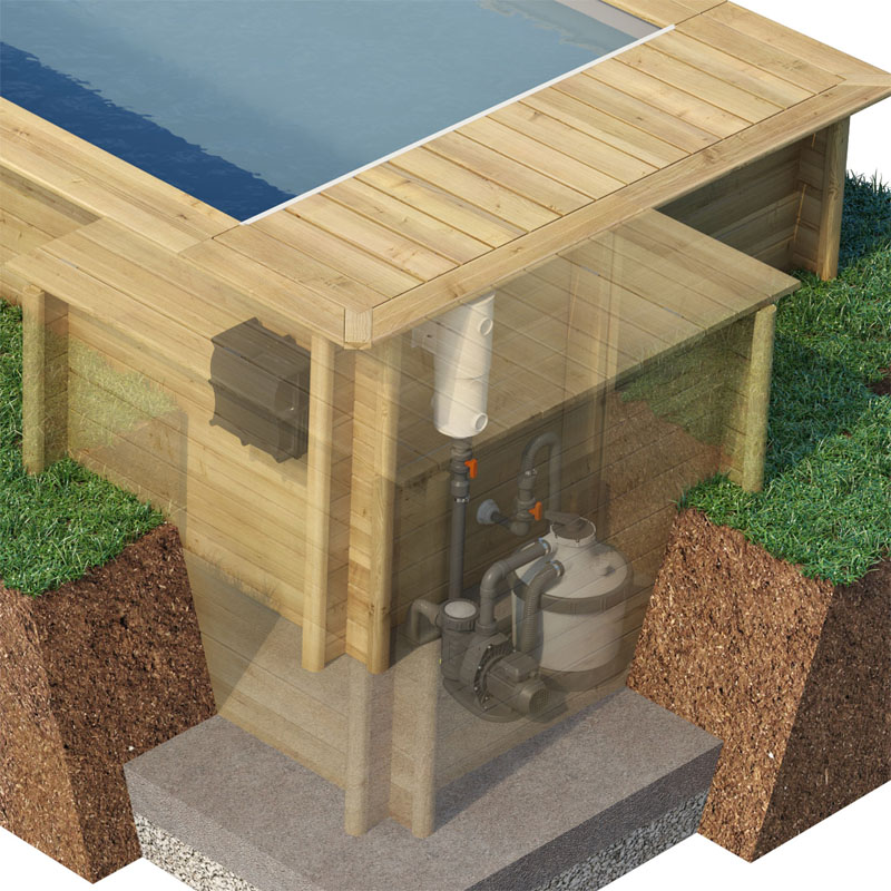 Sie entscheiden! Wenn Sie den Procopi Urban Pool teilweise, oder ganz eingelassen aufbauen möchten, ist der Technikraum Anbau erforderlich. Dieser ist auch schon ein Bestandteil vom Standard-Lieferumfang.